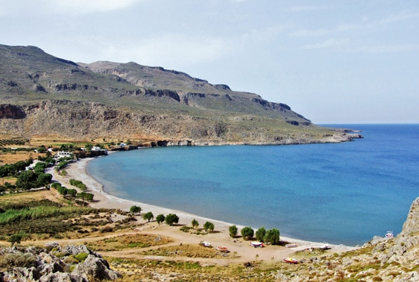 Nachdem sie durch das kleine Dorf Vasiliki gegangen sind, folgen Sie der asphaltierten Straße, die zur lerapetra-Aghios Nikolaos Autobahn führt. Überqueren Sie diese Autobahn auf die andere Seite, um die unbefestigte Straße zu nehmen, die zum kleinen Dorf von Monastiraki führt. Gehen Sie durch das Dorf, das bergauf entlang der rauen Schotterstraße nach einer südöstlichen Richtung führt. An einer markierten Stelle biegen Sie links ab und verlassen den Schotterweg. Jetzt sind Sie auf einem bergigen Pfad, der schließlich auf die unbefestigte Straße führt, die von Kato Chorio kommt und weiter zum Bergdorf Thripti führt. Auf der linken Seite befindet sich eine der leicht zugänglichen Schluchten von Kreta, die Schlucht von Ha (Kletterausrüstung obligatorisch). Fahren Sie weiter bis zum Dorf Thripti und blicken Sie zum letzten Mal auf das grüne Tal von lerapetra, das sich am engsten Punkt zwischen Nord und Südlich der Insel befindet. Wenn du durch den oberen Teil des Dorfes Thripti gehst, ziehst du wieder die unbefestigte Straße Auf der rechten Seite ist der höchste Berg der Sitia Berge, der Gipfel des Afentis Estavromenos (Die Knechtschaft Christi) auf 1.476 Metern.